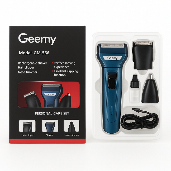 Transforma tu rutina de cuidado personal con la Barbera Geemy 3 en 1 GM-566 Azul, una herramienta versátil y eficiente que reúne tres funciones en un solo dispositivo: