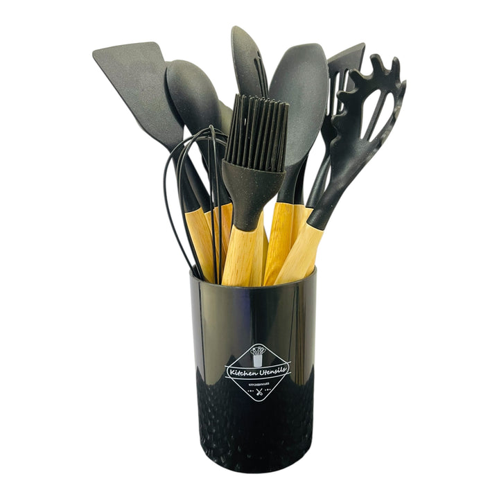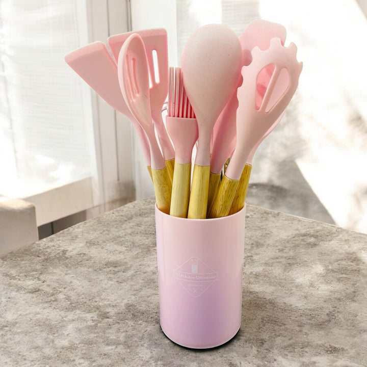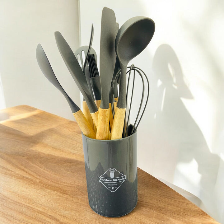 Este set de utensilios de cocina de silicona combina diseño moderno, practicidad y materiales de alta calidad. Es perfecto tanto para cocineros principiantes como para chefs en casa que desean mantener su cocina organizada y con estilo.